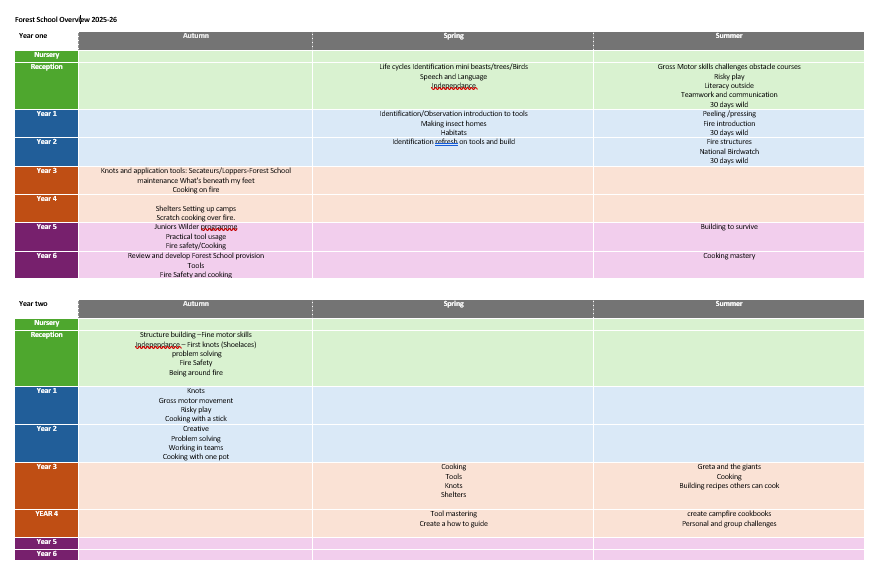 Forest School sessions are child-led, designed around pupils’ interests, and tailored to give every learner the opportunity to succeed. Children are encouraged to make choices, take appropriate risks, and build trust in their own abilities — all within a safe, supportive setting.